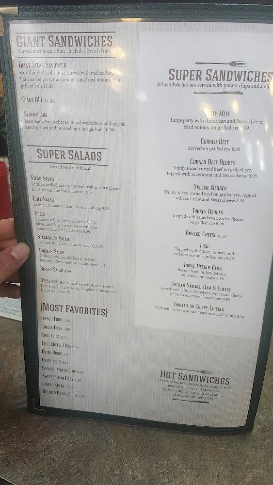 Starbrite’s menu features a range of American diner classics. Breakfast options include fluffy pancakes, omelettes, and, of course, steak and eggs. Lunch and dinner showcase hearty burgers, sandwiches, and comfort foods like chili and homemade soups.